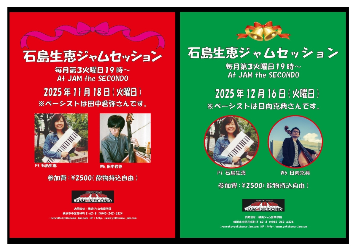石島生恵ジャムセッション11月・12月のベーシストのお知らせ